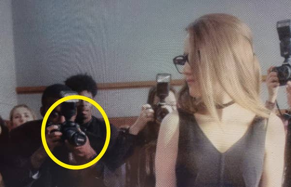 4. En esta escena de Inventando a Anna, uno de los fotógrafos tiene la tapa del objetivo en su cámara.